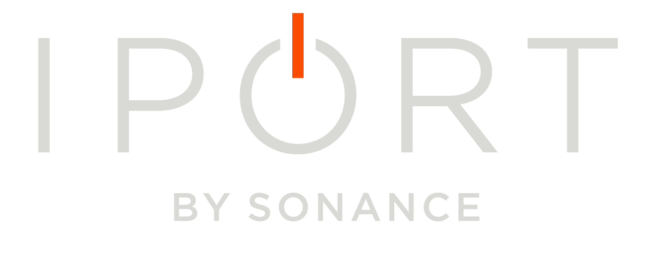 IPORT brand logos with Sonance endorsement lockup.